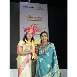 BJP Maharashtra President Chandrashekhar Bawankule presents an award at Dr. Richa’s Unique Clinic event.